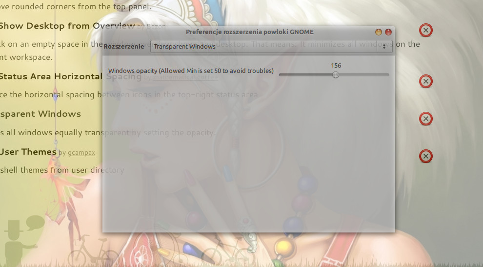 Allows setting custom opacity globaly and per window basis. You can assign different opacity to active and inactive windows. Also there is a simple mode if all you need are transparent terminals.